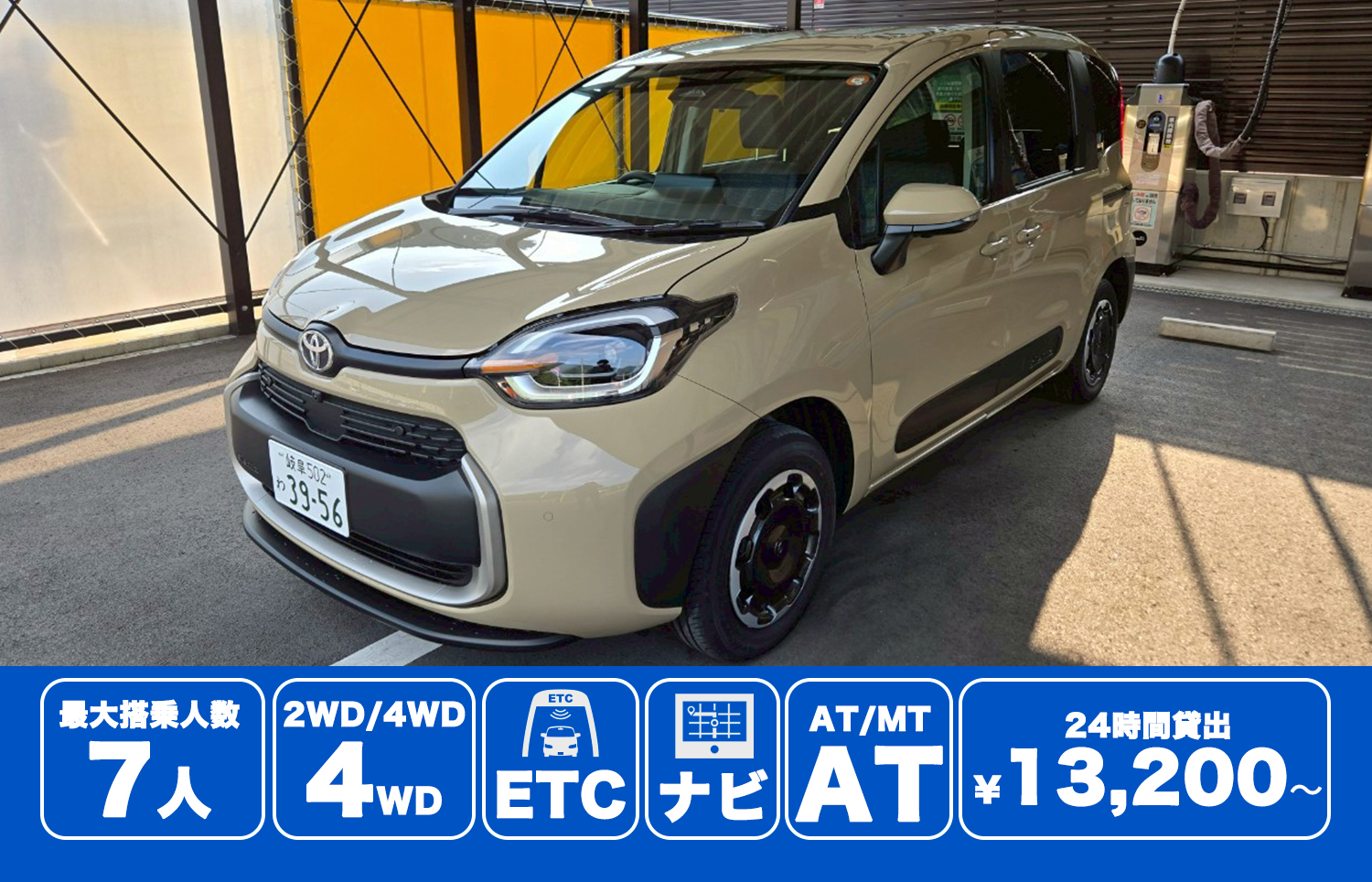 旅行で使う シエンタ 上記以外のレンタル貸出期間のプラン(6時間〜1カ月等)もございます。詳しくはお問い合わせください。 24時間貸出最低価格 ¥13,200 最大搭乗人数 7名 2WD/4WD 4WD ETC あり ナビ あり トランスミッション AT 燃料タイプ ガソリン 禁煙/喫煙 禁煙 旅行で使う